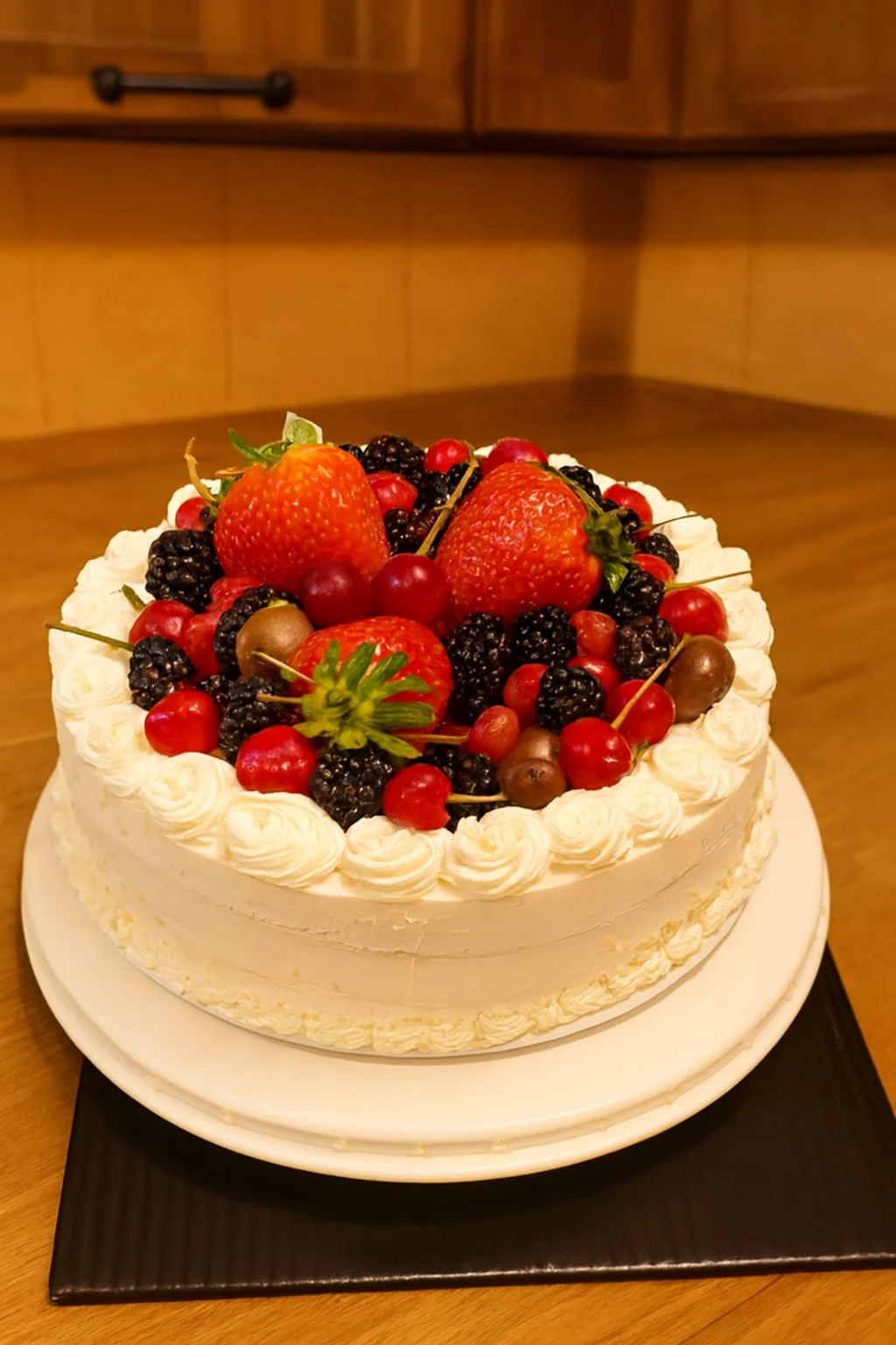 Un clásico irresistible con pan rojo aterciopelado, húmedo y delicado. Su relleno y cubierta están elaborados con queso crema, que aporta una cremosidad única y un balance perfecto entre lo dulce y lo ácido. La decoración de frutas frescas — fresas, moras, cerezas y arándanos — añade frescura, color vibrante y un contraste natural que realza la suavidad del betún.